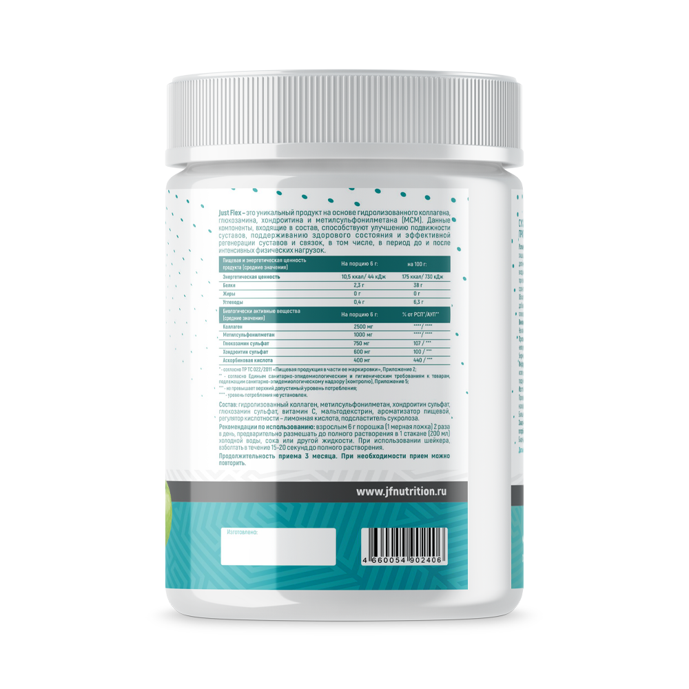 Just Flex разработан специально для тех людей, чьи суставы испытывают регулярную нагрузку или потеряли подвижность в связи с возрастными изменениями, а также для тех, кто стремится улучшить гибкость. Продукт легко размешивается в воде или любом другом напитке по вашему вкусу. Каждая упаковка содержит месячную норму продукта.