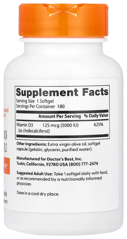 Doctors Best Vitamin D3 5000IU 180 капс